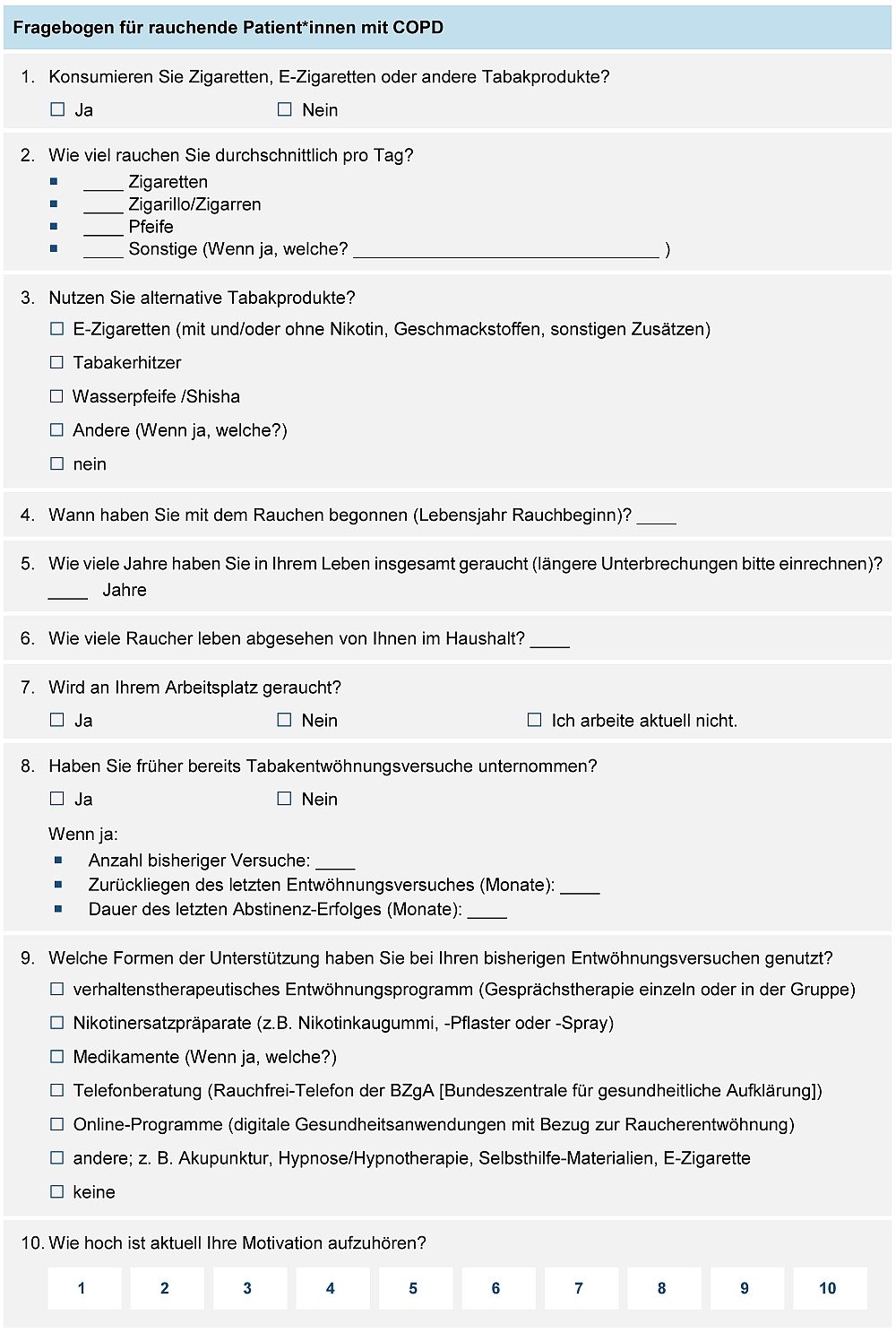 Fragebogen für rauchende Patient*innen mit COPD