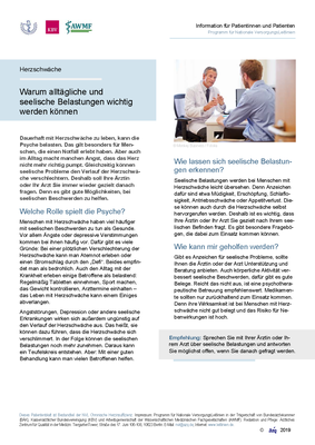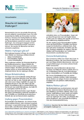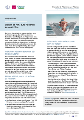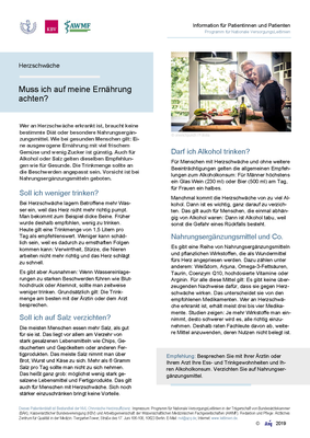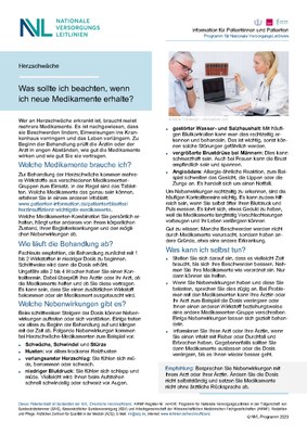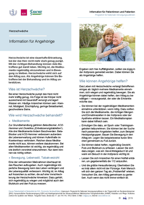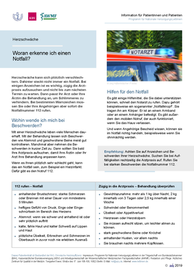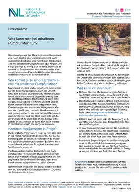 Die NVL Chronische Herzinsuffizienz stellt für spezifische Entscheidungs- oder Informationssituationen evidenzbasierte Materialien in laiengerechter Sprache bereit. Diese auf den Empfehlungen der NVL beruhenden Patientenblätter sollen die behandelnden Ärzte in der Beratung der Patienten unterstützen und so zur gemeinsamen Entscheidungsfindung beitragen.